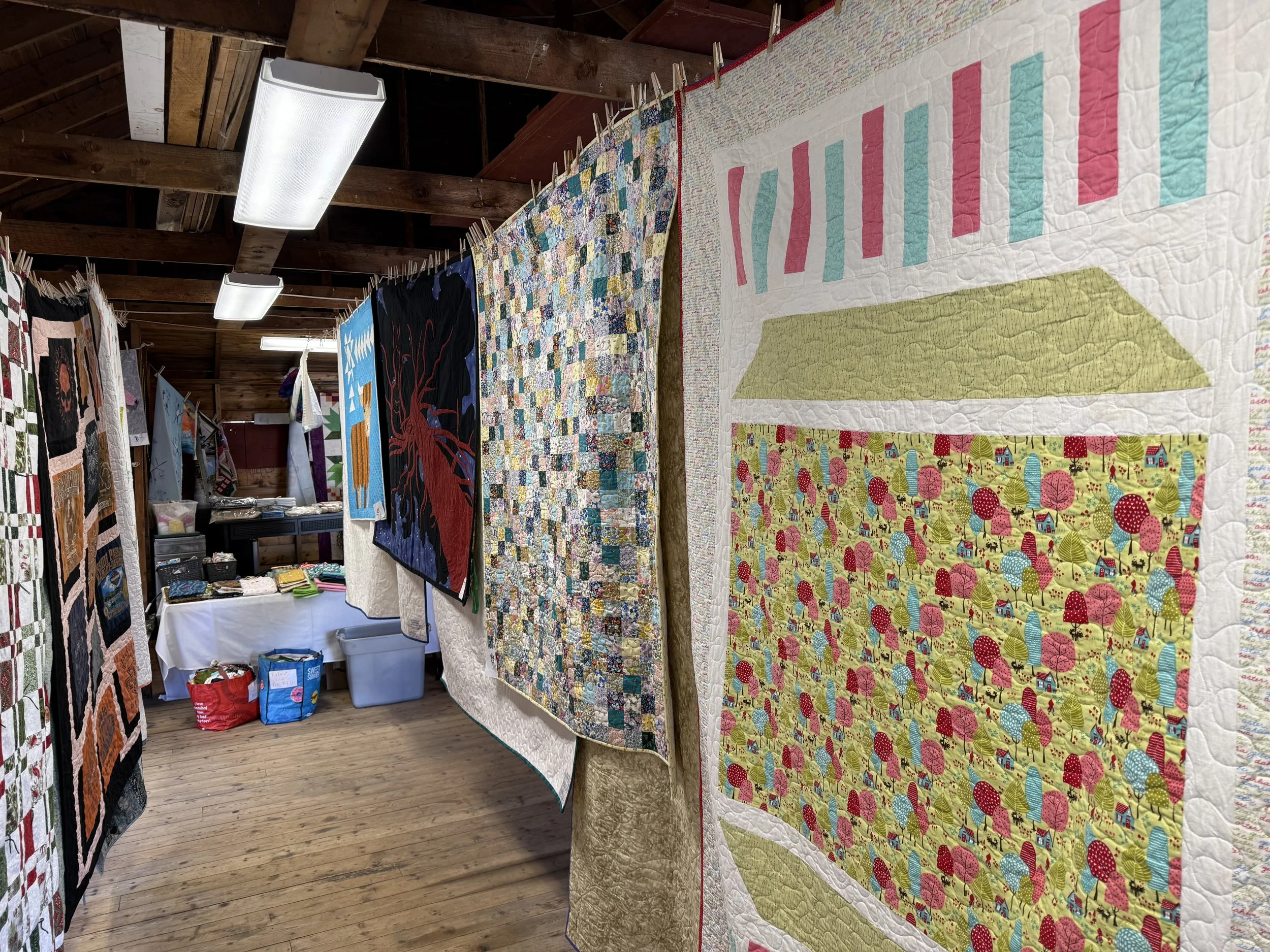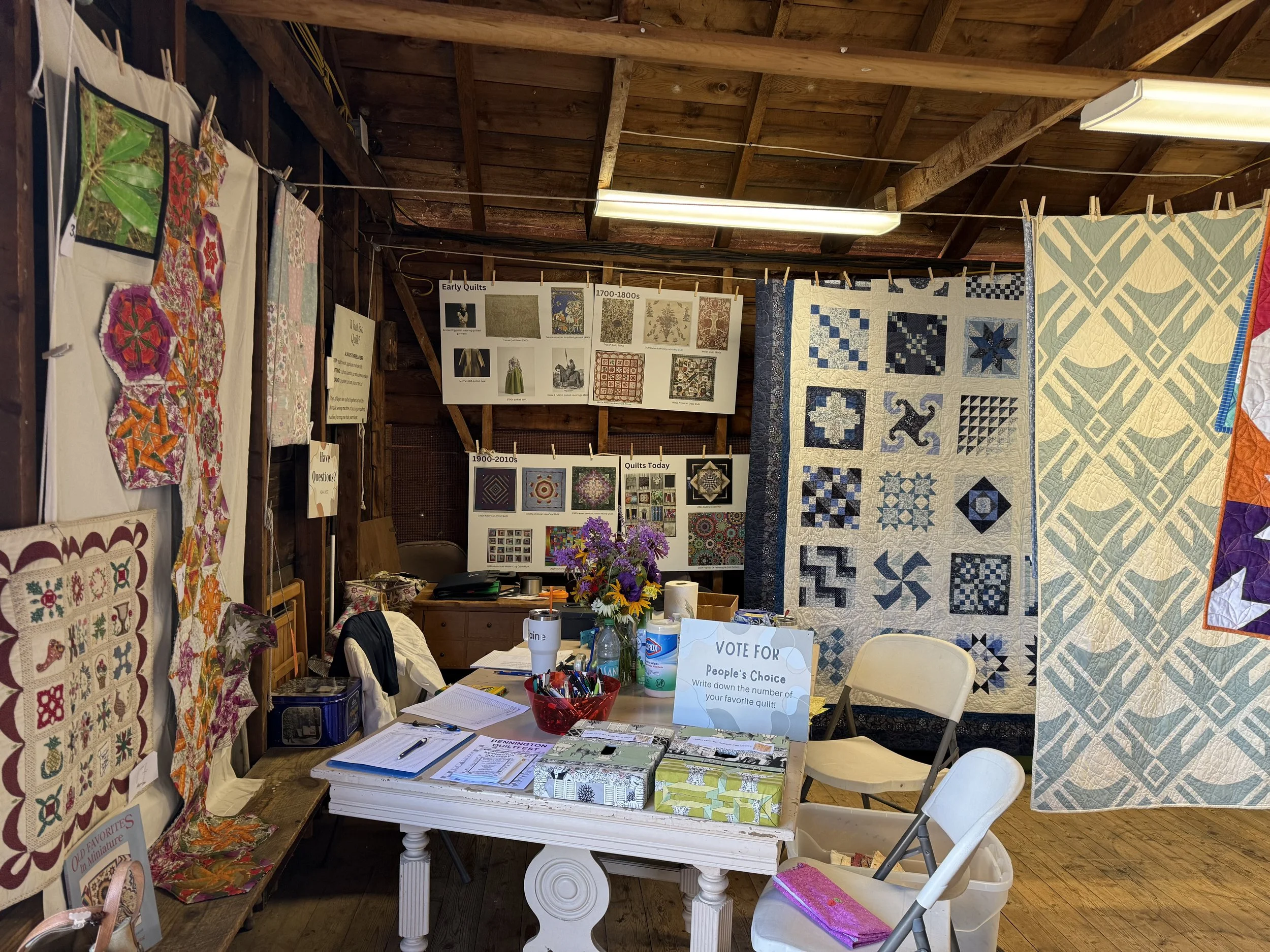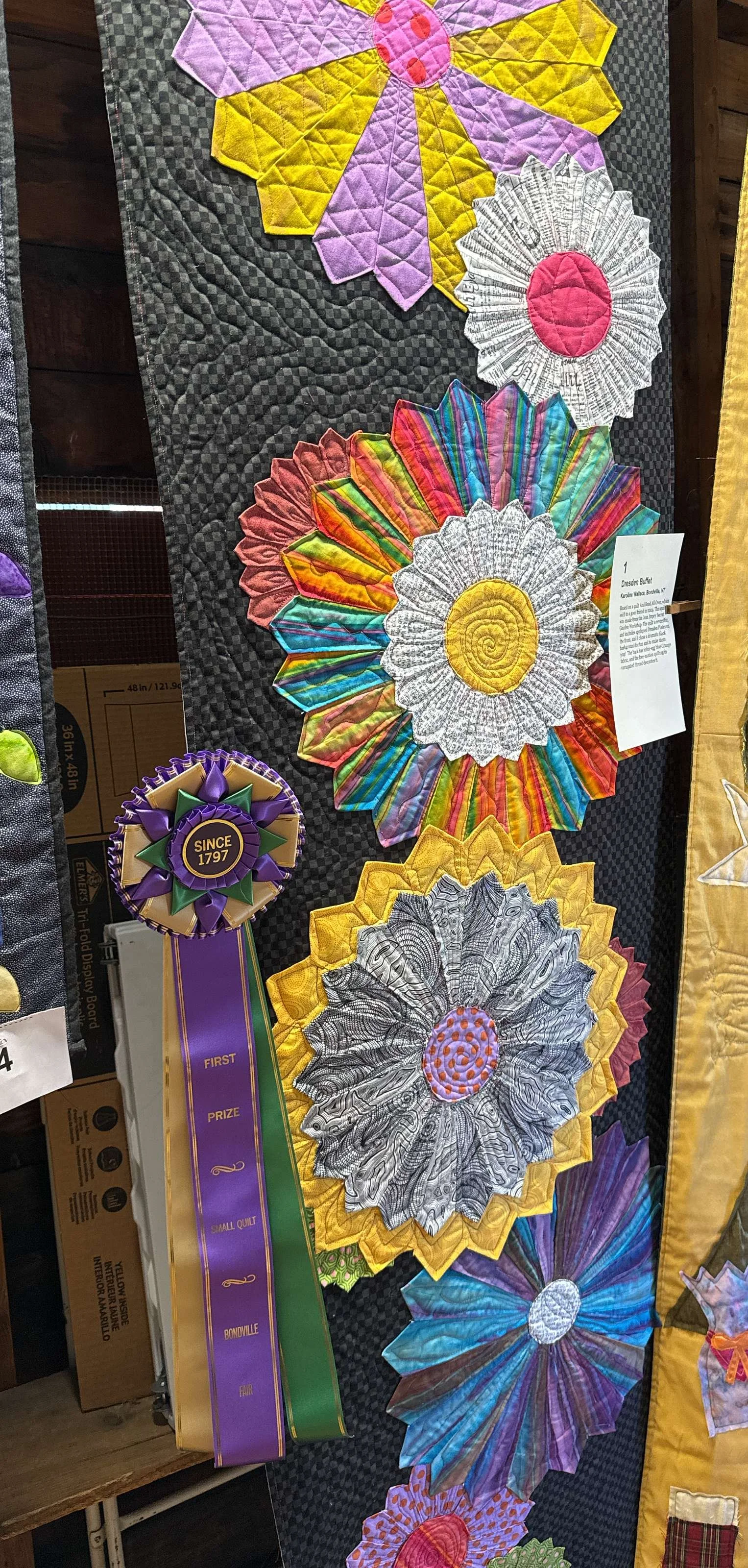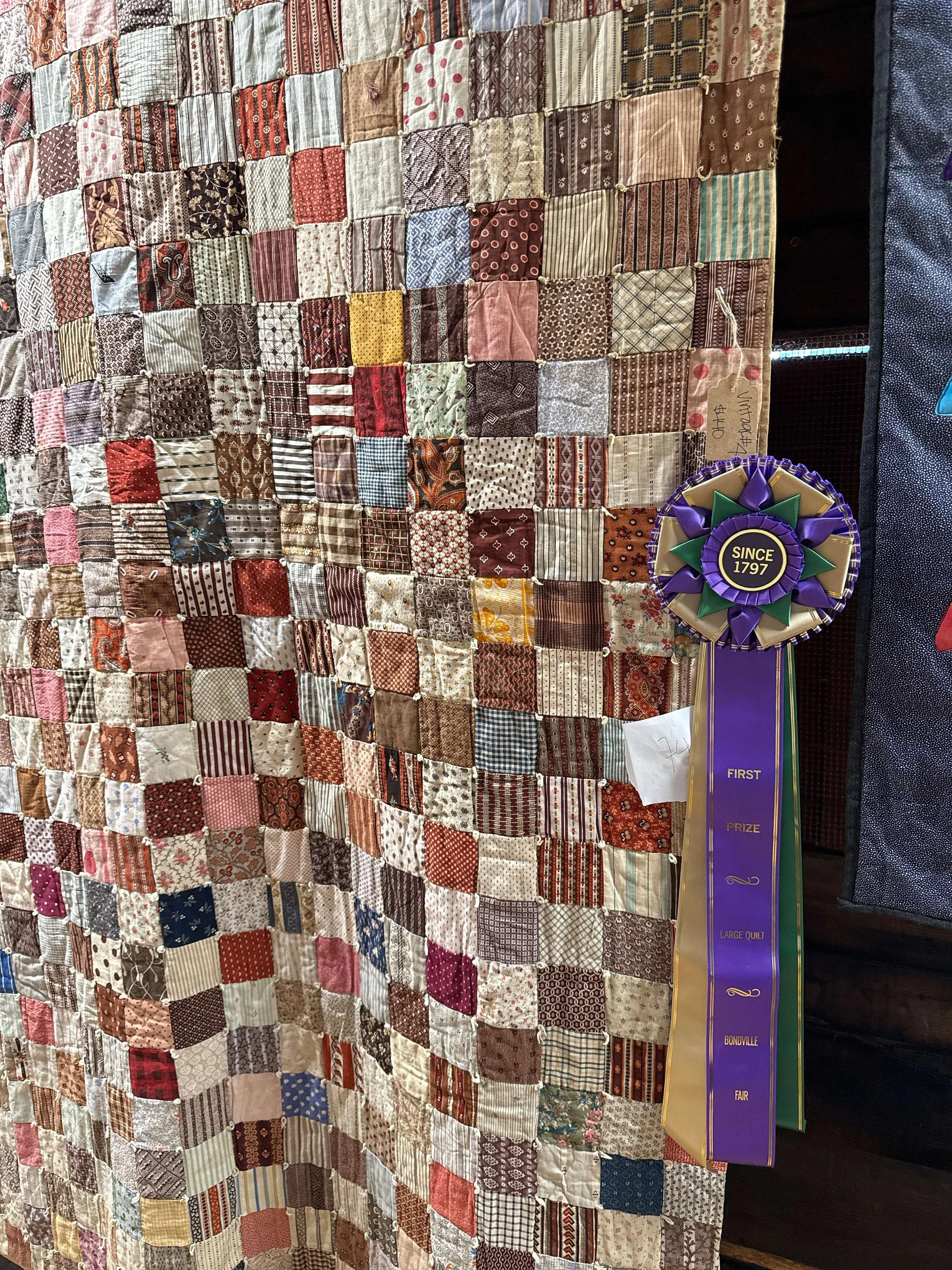The 2026 Bondville Fair Quilt Show will be held this year on August 28th, 29th, and 30th. In this 228th Year of the Bondville Fair (excluding COVID year), we will have some raffle quilts, antique quilts, prize judging, the popular Kid's Korner where kids create paper quilt blocks, items for sale, and lots of gorgeous and interesting quilts on show. We’ll also be raffling last year’s Kids’ Korner Kwilt, made from an image of the blocks the kids made last year. See images below from past years.